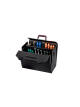 Spatiul de depozitare de inalta clasa KingSize CP-7 din seria TOP-LINE de la PARAT gazduieste peste 70 de unelte. Geanta premium din piele de vaca neagra vine cu suporturi din aluminiu ranforsate in lateral, care ofera si mai multa stabilitate si protejeaza astfel perfect continutul gentii de socuri si impacturi. In ciuda designului sau robust si rigid, geanta este extrem de flexibila in manipulare: panourile frontale si posterioare pliabile ofera o vedere perfecta asupra uneltelor depozitate. Aceste panouri poarta cate un suport de scule CP-7 pentru diferite unelte de diferite diametre. Sistemul de prindere special dezvoltat din material plastic de inalta clasa pastreaza totul la locul sau, in orice moment. Panoul de acoperire din 2 parti al gentii KingSize CP-7 ofera atat un orificiu de prindere, cat si un maner de transport PARAT ergonomic si este blocat prin incuietori. O curea de transport reglabila poate fi prinsa in cataramele nituite in panourile laterale pentru si mai mult confort. Acest lucru face ca geanta de scule de inalta clasa de la PARAT sa fie mai usor de transportat - astfel, pana la 70 de unelte pot fi transportate confortabil in geanta!